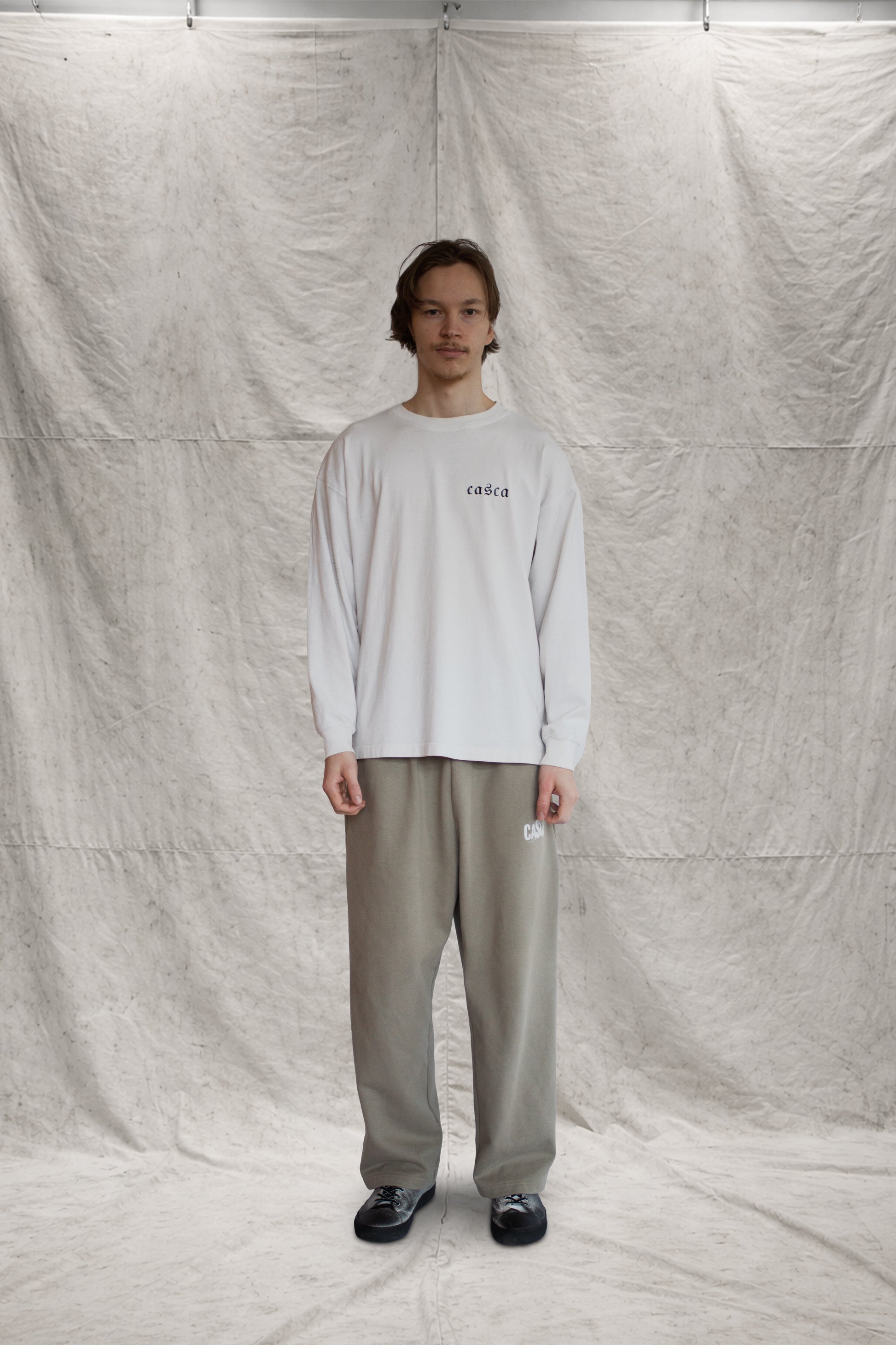 Baggy sweatpants with logo print in a beige colour-way.